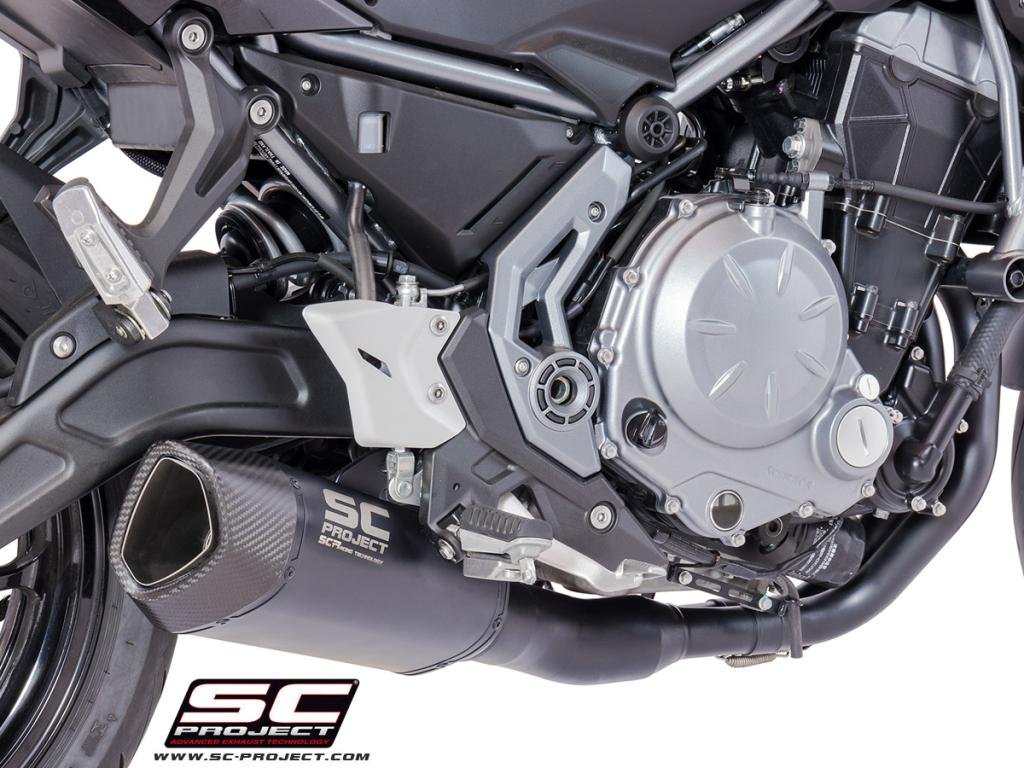 SC Project Full Exhaust System for Kawasaki Ninja 650 (2017-2019) Full exhaust system 2-1, with SC1-R GT Muffler, matt black painted titanium, with carbon fiber end cap