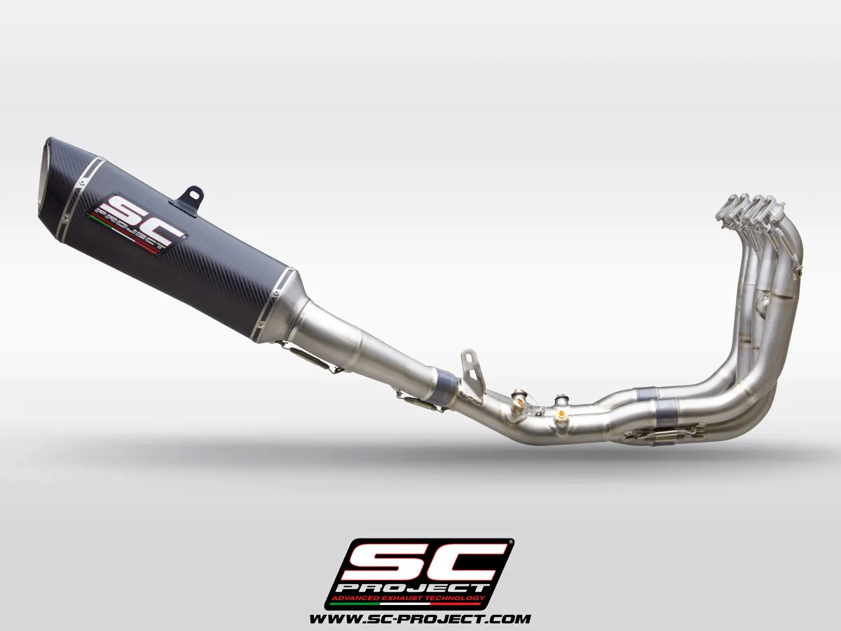 SC Project full exhaust system engineered for SC Project motorcycles. Enhances performance, exhaust sound, and weight reduction with direct-fit installation.