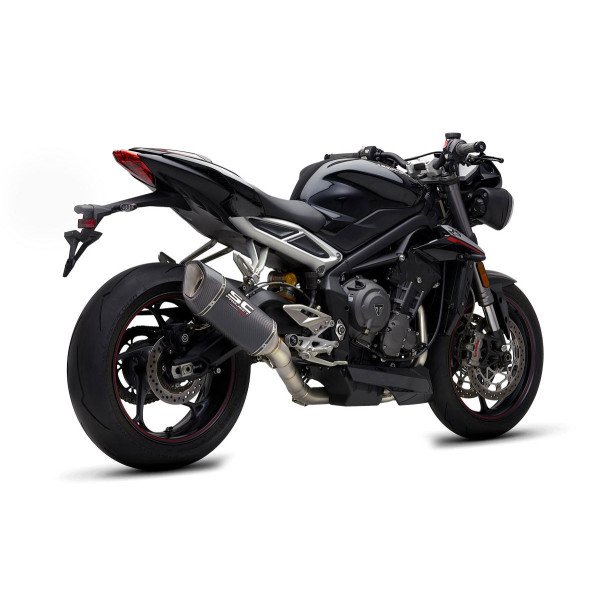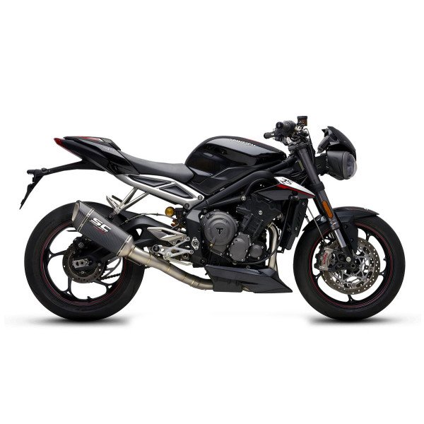 SC Project full exhaust system engineered for Triumph motorcycles. Enhances performance, exhaust sound, and weight reduction with direct-fit installation.