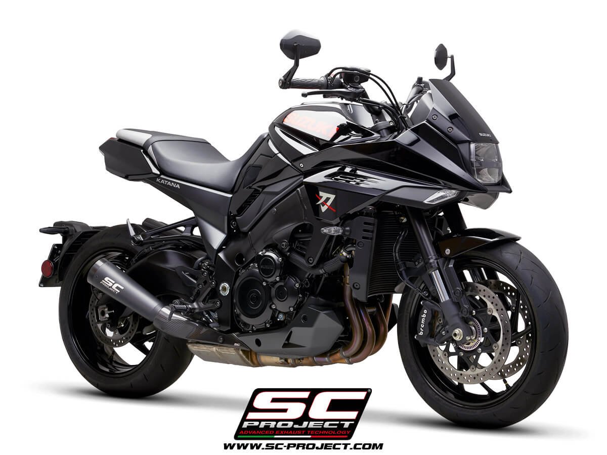 SC Project performance exhaust engineered for Suzuki motorcycles. Enhances performance, exhaust sound, and weight reduction with direct-fit installation.